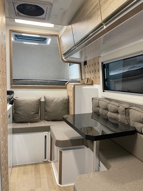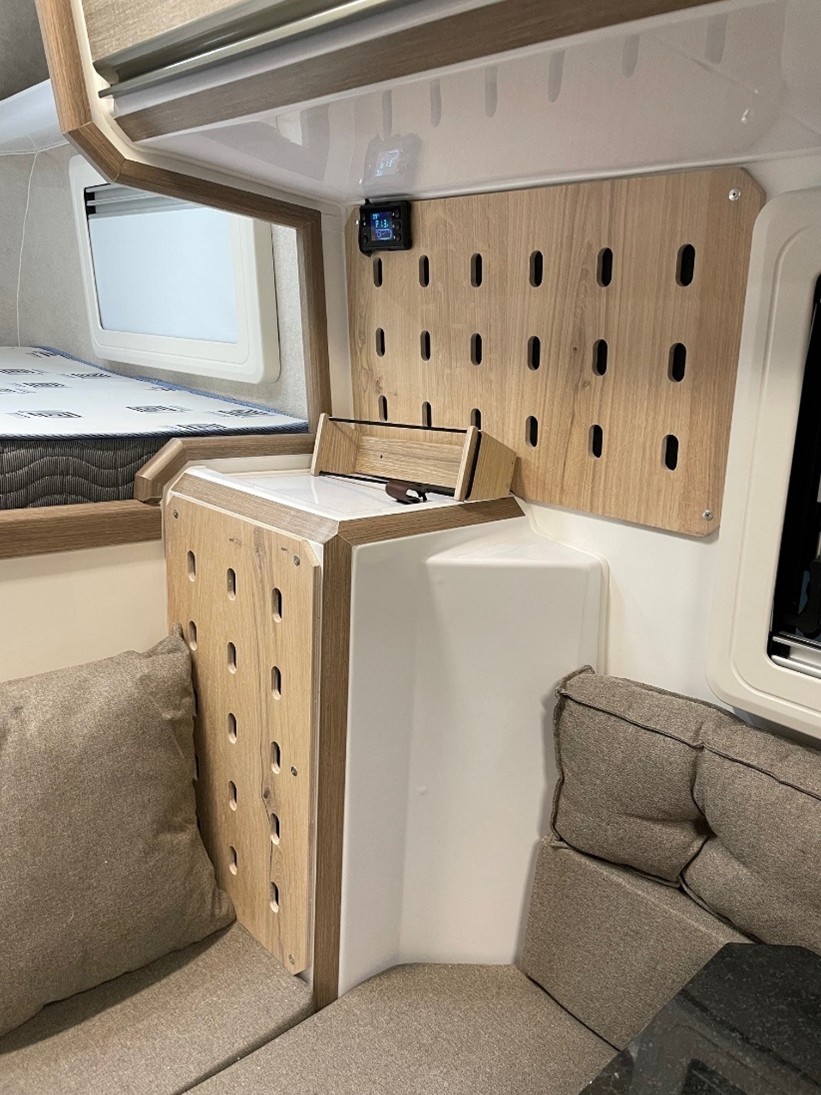 - Küche mit Edelstahlspüle mit warmem und kaltem Wasser, 98 Liter 12V Elber Kühlschrank
