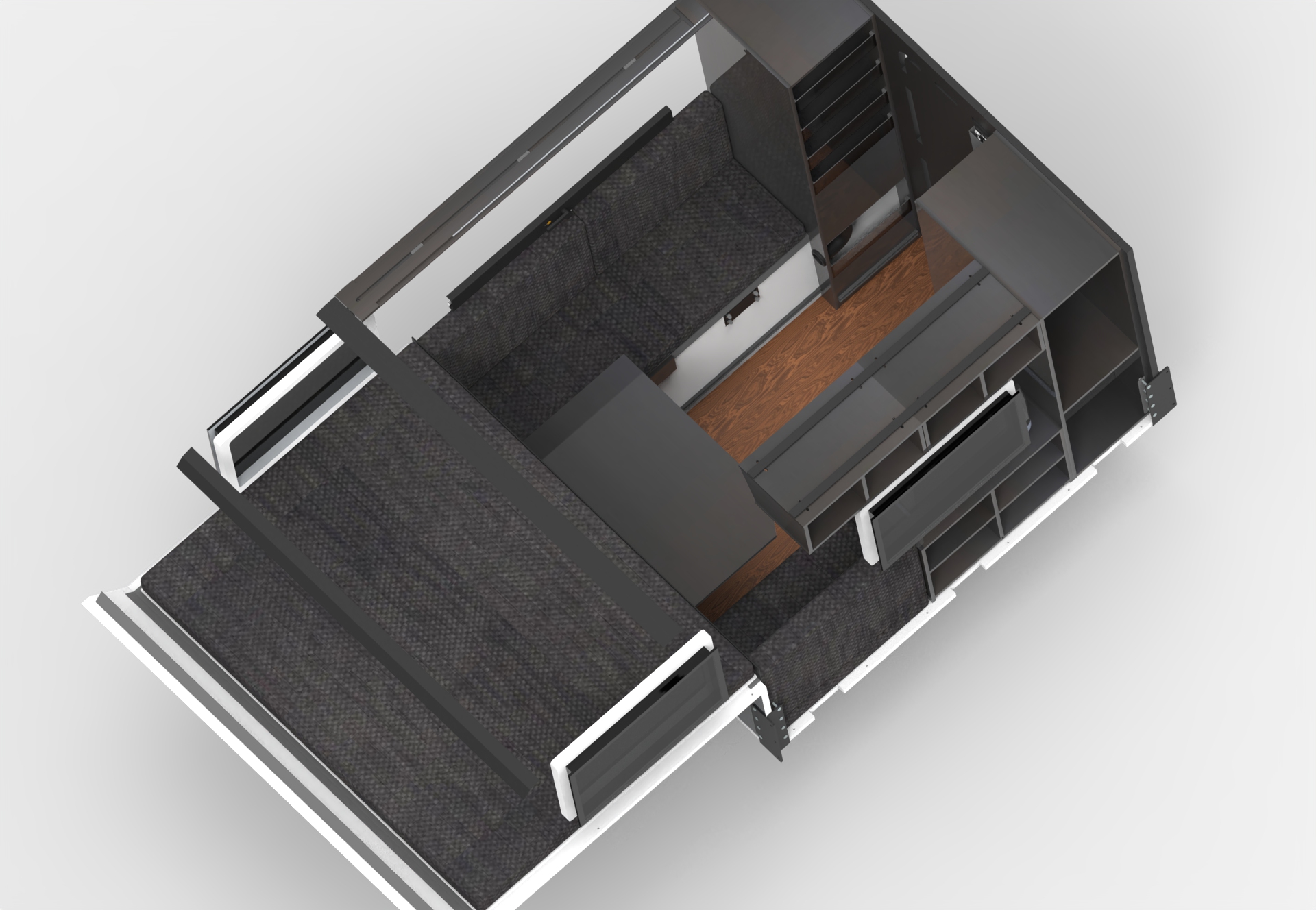 Vanexxt hat eine neue Wohnkabine, die alles bietet, was man für das perfekte Abenteuer benötigt. Diese Kabine verfügt über ein geräumiges Alkovenbett, das bequem Platz für zwei Personen bietet und somit eine erholsame Nachtruhe garantiert. Das Bett ist perfekt in den Innenraum integriert und lässt genügend Platz für Stauraum und Ablageflächen. Die Sitzgruppe kann zu einem Kinderbett umgebaut werden und Längsschläferoption mit 2,0 m x 1,94 m ist optional verfügbar.